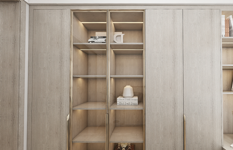 业主夫妻的职业是教师,所以对书籍的收纳也尤为看重。杨工充分了解到二人的需求,在书房定制了满墙到顶的书柜,分为开放式、封闭式两种设计,满足业主的需求。